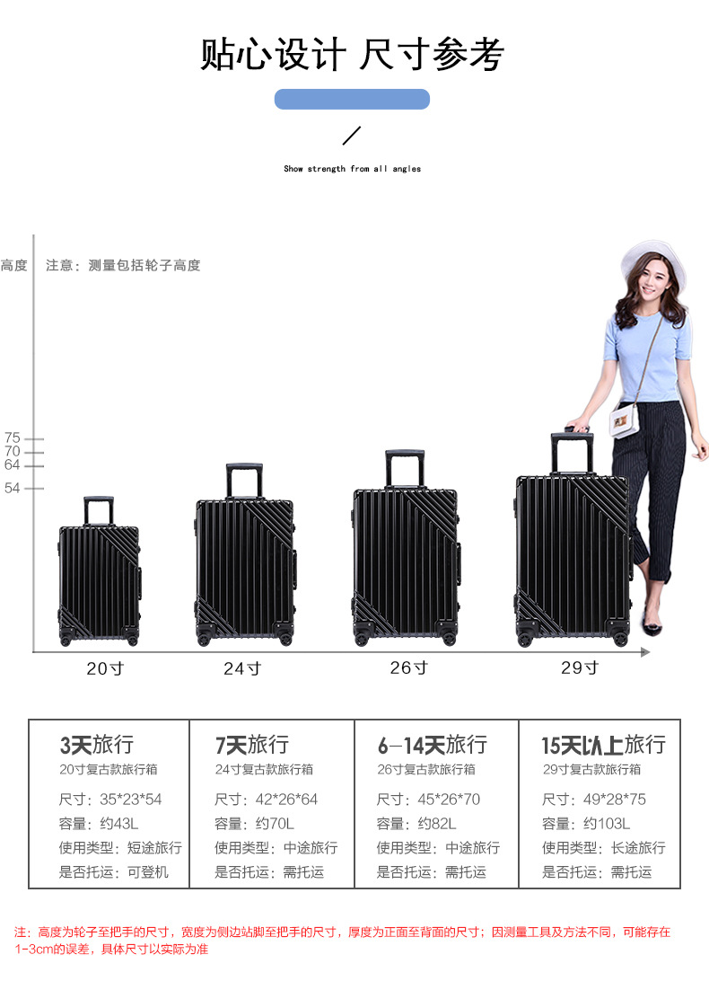 | Luggage Size | 20", 24", 26", 29" |